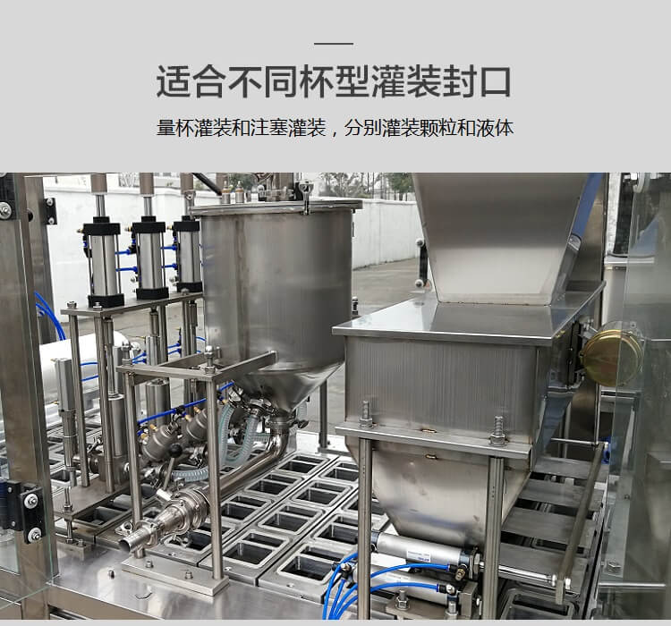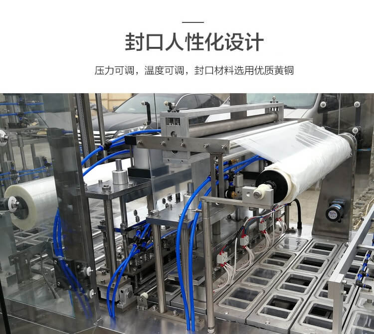 BHJ-4 全自動托盒灌裝封口機,根據(jù)客戶需求,特別設(shè)計兩種不同的灌裝方式:量杯灌裝和注塞灌裝,分別灌裝顆粒和液體。增加吹氣功能,并配有提升機和輸送帶。