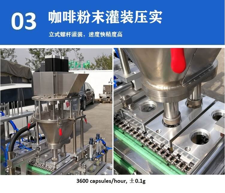 KFP-2 全自動K-CUP咖啡膠囊灌裝封口機(jī),立式螺桿灌裝,精度高速度快,3600 capsules/hour。