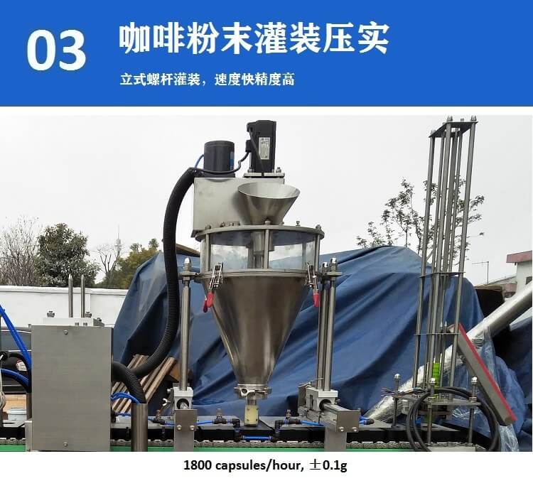 KFP-1 全自動雀巢咖啡膠囊灌裝封口機(jī),根據(jù)客戶需求,特別定制為:一臺高速雀巢咖啡膠囊灌裝封口機(jī),另一臺為封裝好的雀巢膠囊進(jìn)行二次封裝,1800 capsules/hour。