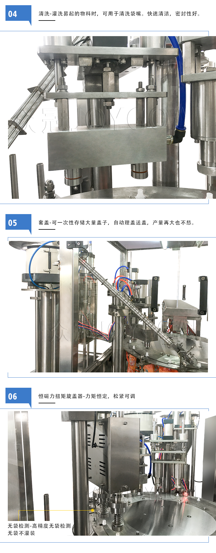詳細圖片顯示如何調(diào)整機器速度,如何調(diào)整灌裝量,如何調(diào)整振動強度,如何調(diào)整旋蓋強度,如何維護