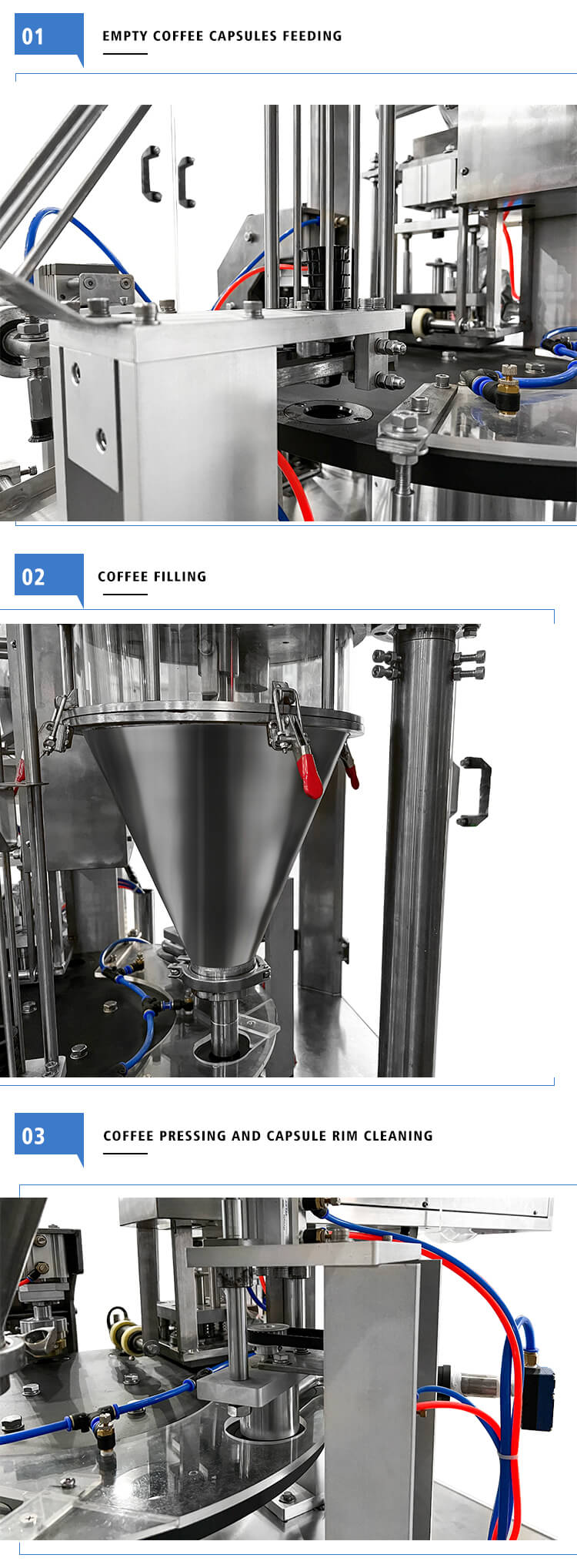 Little Dimensions, higher rate capability, complete capabilities and completely automatic, High precise engine powered by servo motor, PLC control and real-time tracking, Nitrogen system: flush capsule, No cup no filling without a sealing (continues generation no pause)We have empty coffee capsules, filter, and lid, coffee capsule filling sealing machine for K-CUP, Nespresso, Lavazza, Dolce Gusto, etc.