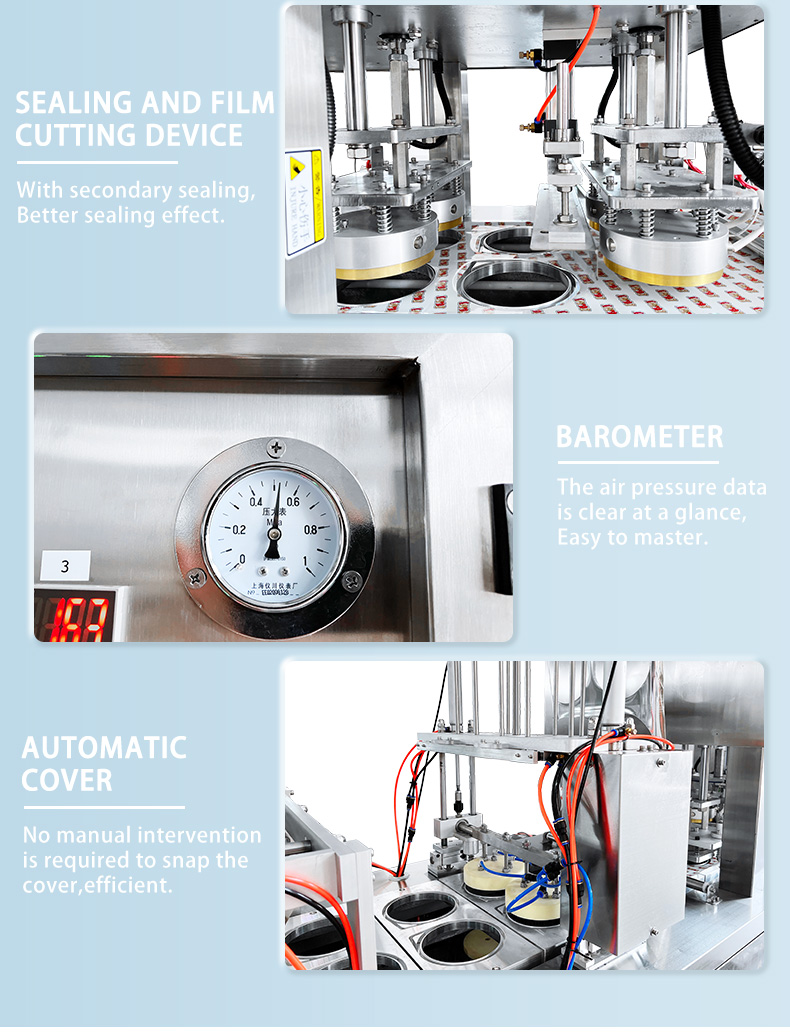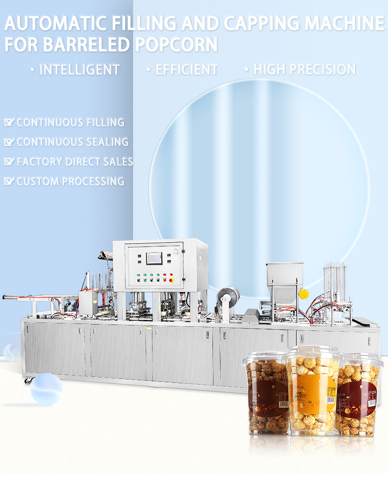 Commercial pneumatic popcorn jelly yogurt K cup filling sealing packing machine